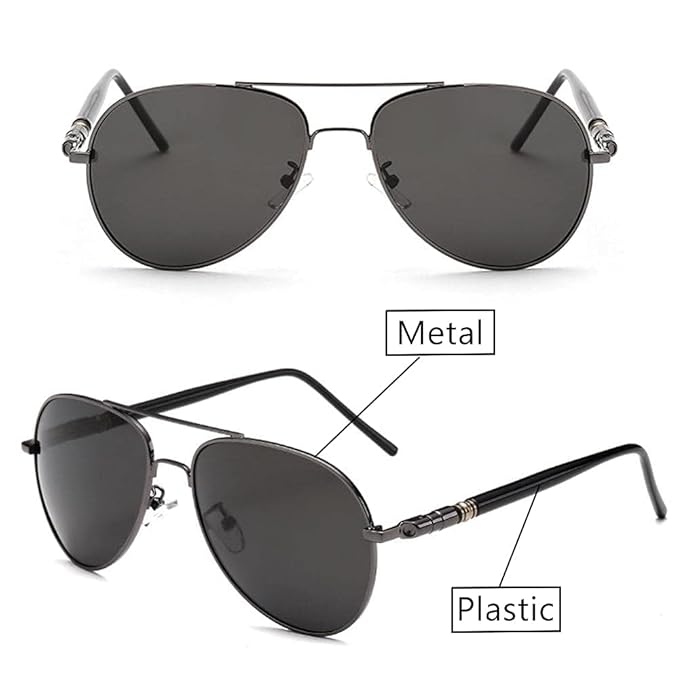 Polarized Sunglasses For Men and Women Wayfarer UV Protection Aviator Shape Goggles Sunglass Silver and Gun-Metal (Black)-Pack of 1